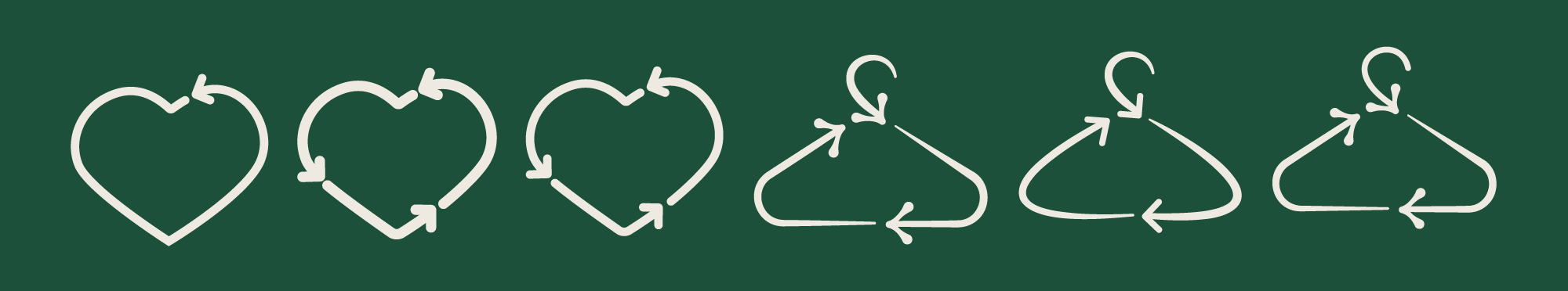 Logo development went through several iterations. My early concept used a heart icon to tie emotional appeal to sustainability, but it felt visually disconnected from the type. I pivoted to a custom hanger icon, which paired much better with our refined wordmark. Playing with line weights and stroke styles, I landed on a mark that felt light but intentional—just like the brand itself.