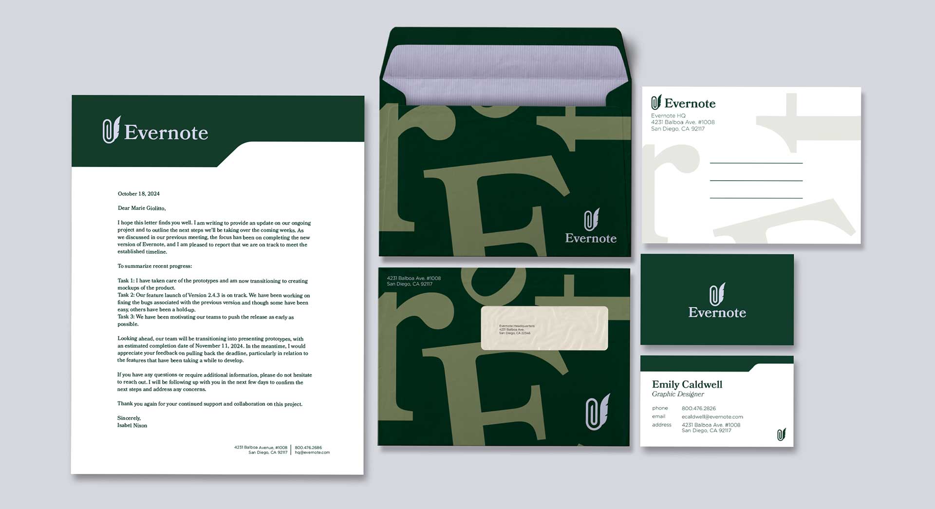 My favorite part of the project was applying the new branding to digital environments—particularly the Evernote app. I wanted to enhance the analog-inspired feel without sacrificing usability.